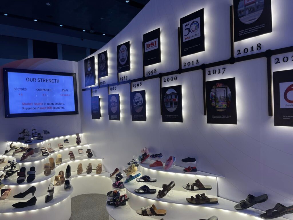 Exhibition Stall of DSI group 60th Anniversary for Footwear and Leather fair 2023 at BMICH EPA December 31, 2023 Advertising, Indoor