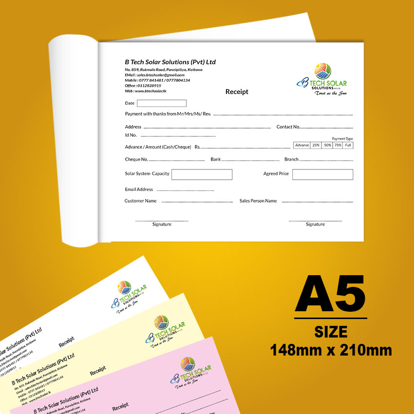 | Inner pages | NCR Material (2 to 5 copies printable) |