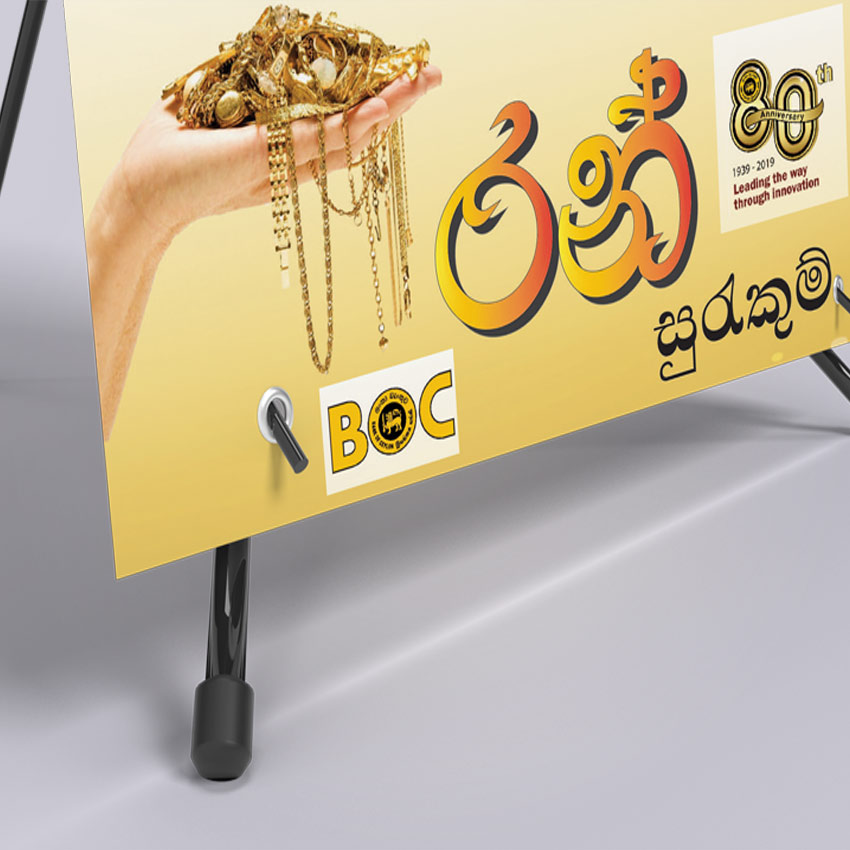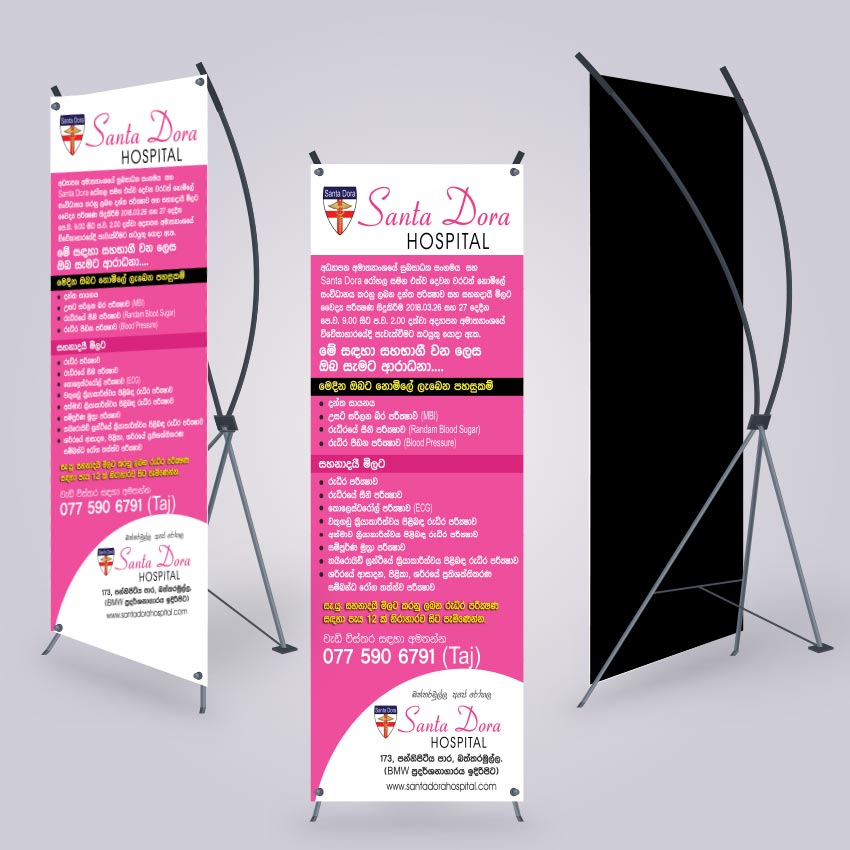 X-Banner is used in companies and exhibitions in order to advertise their products and services, where the name and logo of the company’s is visible and its trademarks etc. The design of the X-Banner contains the contact information for the company or institution too.